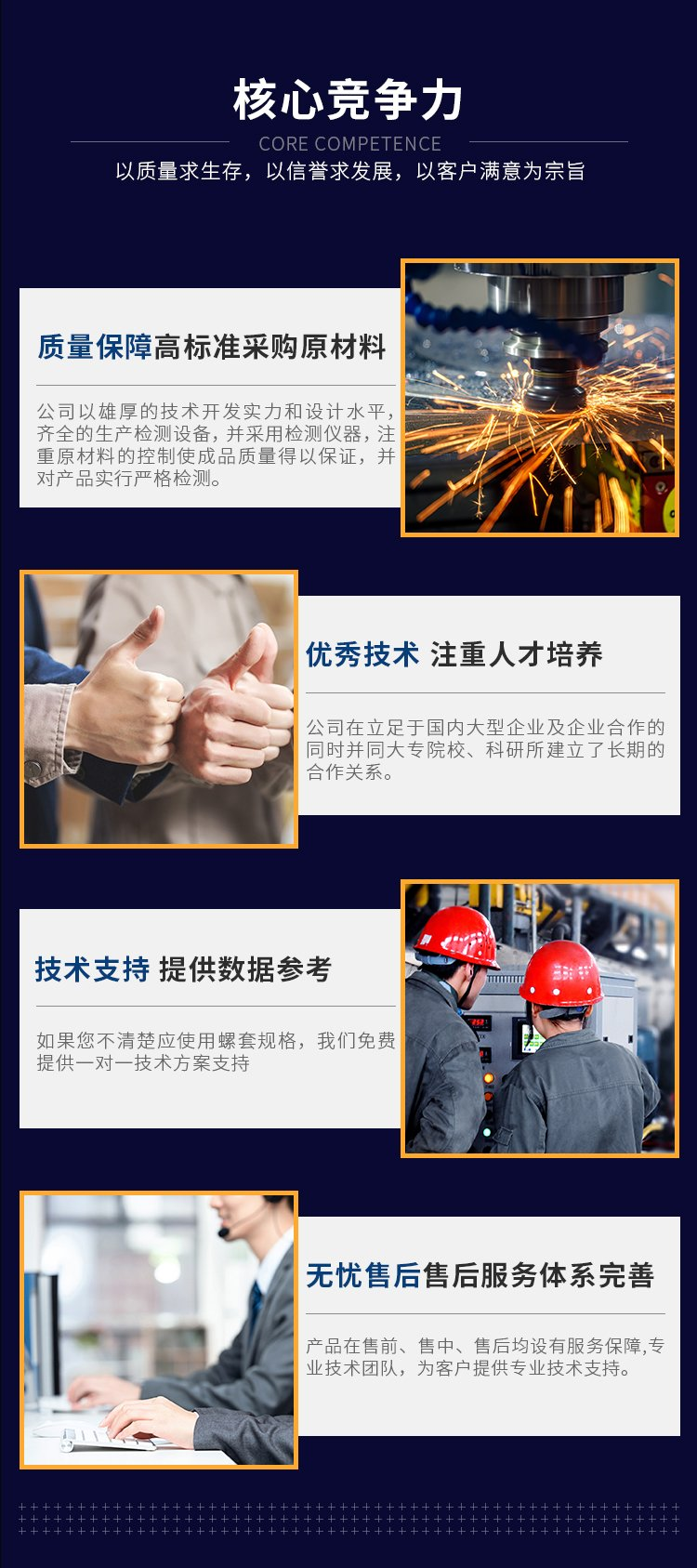 可根據用戶需要設計、制造各種特殊品種的螺紋底孔絲錐,例如在軟鋁,紫銅上攻絲的機用、手用擠壓絲錐,單支普通鋼攻絲的專用機用絲錐、不銹鋼攻絲絲錐、用于盲孔的平底絲錐、螺旋槽絲錐、螺尖絲錐等。鋼絲螺套絲錐、螺紋護套絲錐的選擇