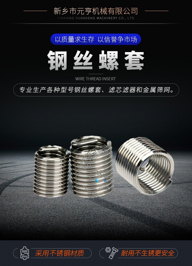 使用標(biāo)有規(guī)定螺紋規(guī)格的鋼絲螺套專用絲錐攻絲,攻絲的長度必須超過鋼絲螺套長度,對(duì)于通孔,要全部攻絲;攻絲的精度決定終標(biāo)準(zhǔn)內(nèi)螺孔的公差帶,使用者要適當(dāng)?shù)剡x擇攻絲方法和潤滑,盲孔攻絲要適當(dāng)用力, 以防折斷絲錐。攻絲后,螺紋孔應(yīng)清理,一般用壓縮空氣噴槍吹,盲孔時(shí)還應(yīng)使用帶徑向孔的長噴槍自下而上清理, 也可以用清洗的方法清理螺紋孔。螺紋孔精度高時(shí),應(yīng)用專用鋼絲螺套底孔塞規(guī)進(jìn)行檢查。