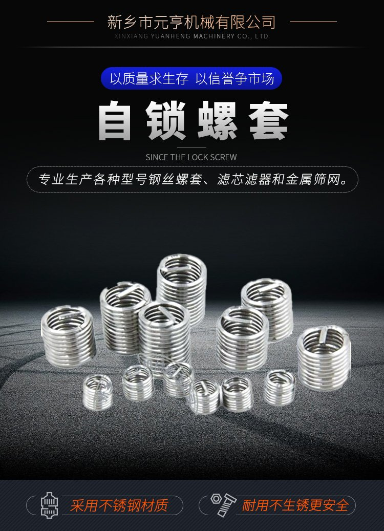 使用標(biāo)有規(guī)定螺紋規(guī)格的鋼絲螺套專用絲錐攻絲,攻絲的長(zhǎng)度必須超過鋼絲螺套長(zhǎng)度,對(duì)于通孔,要全部攻絲;攻絲的精度決定終標(biāo)準(zhǔn)內(nèi)螺孔的公差帶,使用者要適當(dāng)?shù)剡x擇攻絲方法和潤(rùn)滑,盲孔攻絲要適當(dāng)用力, 以防折斷絲錐。攻絲后,螺紋孔應(yīng)清理,一般用壓縮空氣噴槍吹,盲孔時(shí)還應(yīng)使用帶徑向孔的長(zhǎng)噴槍自下而上清理, 也可以用清洗的方法清理螺紋孔。螺紋孔精度高時(shí),應(yīng)用專用鋼絲螺套底孔塞規(guī)進(jìn)行檢查。