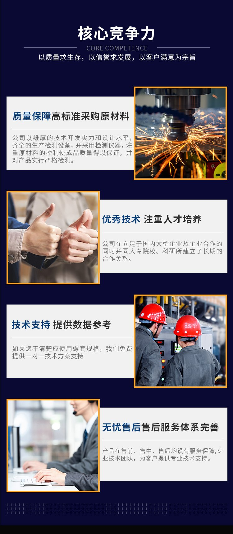 可根據(jù)用戶需要設(shè)計(jì)、制造各種特殊品種的螺紋底孔絲錐,例如在軟鋁,紫銅上攻絲的機(jī)用、手用擠壓絲錐,單支普通鋼攻絲的專用機(jī)用絲錐、不銹鋼攻絲絲錐、用于盲孔的平底絲錐、螺旋槽絲錐、螺尖絲錐等。鋼絲螺套絲錐、螺紋護(hù)套絲錐的選擇