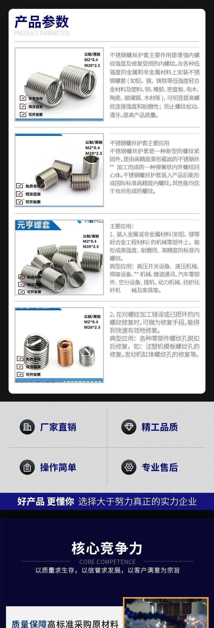 簡易螺紋護(hù)套安裝工具有螺紋頭、光桿兩種。用于少量安裝,一般維修、實驗時用,操作時不易安裝,鋼絲螺套容易報廢。